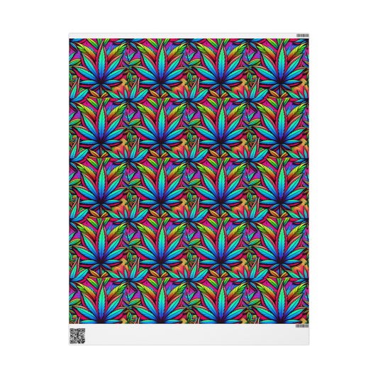 Vibrant Boho Cannabis Leaf Design Wrapping Paper Roll