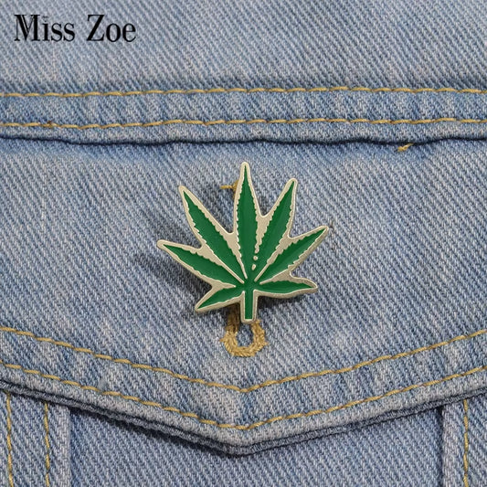 Marijuana Leaves Enamel Pins Custom Green Brooches Lapel Badges Plant Jewelry Gift for Friends