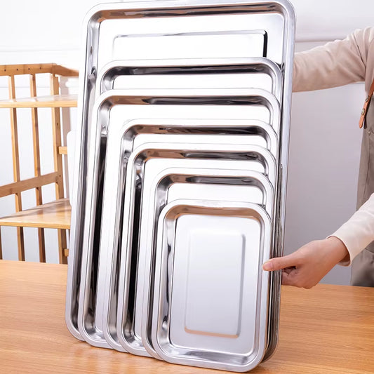 Stainless Steel Storage Metal Tray Rectangle Food Shallow Plates Serving Fruit Steaming Dish Tools Household Kitchen Accessories