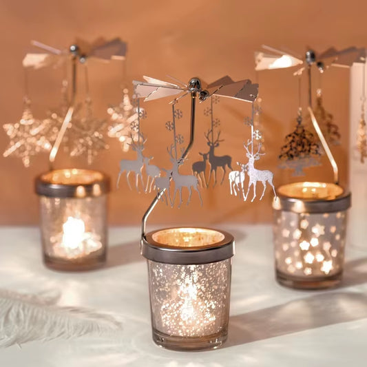 Love Wedding Candle Holders Snowflake Deer Fairy Rotating Candlestick Metal Tray Romantic Home Decoration Christmas Ornament